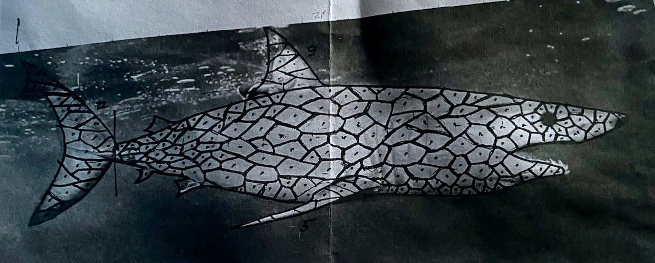 Partly due to some perceived issues with his proposed artwork, Peter has now changed his plans to reactivate a self-funded project that we started planning last year: a 20-foot Mako shark made from fused glass mounted to a brushed-steel exoskeleton.