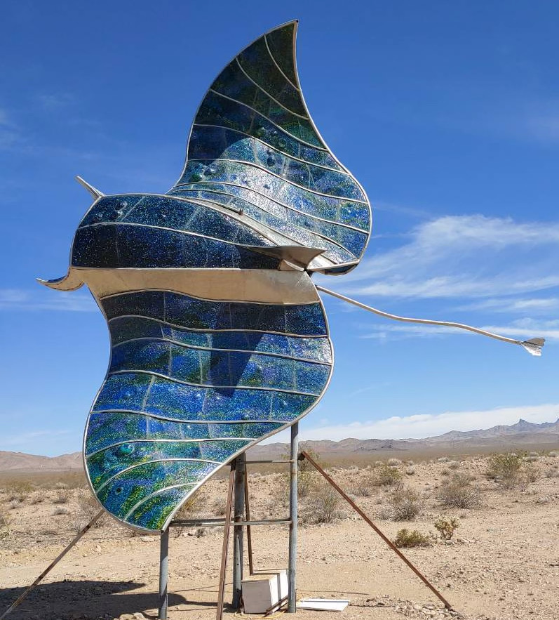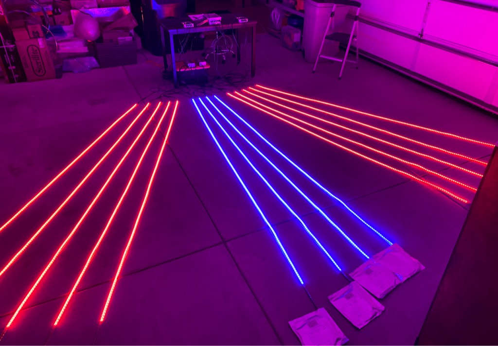 Fly By is permanently installed in the tiny town of Nipton, CA, in the northeast corner of the Mohave National Preserve. It’s exposed to intense heat, UV radiation, dust, and occasional rain. Not to mention the scorpions and rattlesnakes who are possibly puzzled by the marine creature hovering above the desert floor. So to maximize the longevity of the lighting system (and minimize “service calls” requiring an 8-hour drive), I’ve spent a lot of time selecting components that can withstand these arduous conditions. The first challenge was selecting the best type of LED strip.