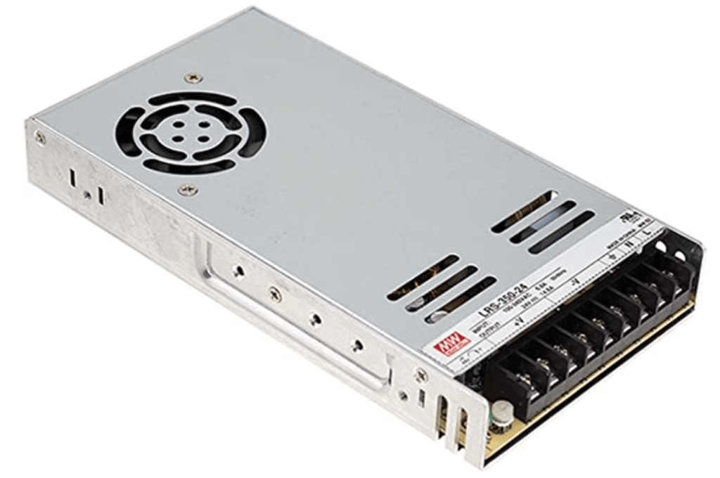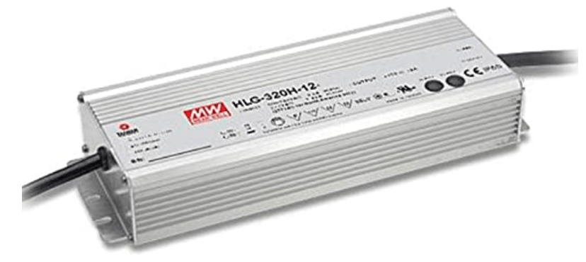 My first decision was whether to use a typical “enclosed” power supply or an environmentally-sealed one. Enclosed power supplies are much cheaper, and available in a wider range of power levels, but must be mounted in a sealed enclosure for outdoor applications. Since they rely on forced air flow (via the fan) for cooling, the outer enclosure must also provide a fan or some means for the hot air from the power supply to escape. This adds complexity and significant cost to the enclosure, and I didn’t find many options that would work for this application. So even though the sealed type power supply was about twice as expensive as the non-sealed (for the same wattage), I think this approach ended up being less expensive, and certainly more compact. Sealed power supplies rely on natural convection and radiation for cooling. Since they will be mounted on a metal baseplate inside the Manta, cooling shouldn’t be a major issue.