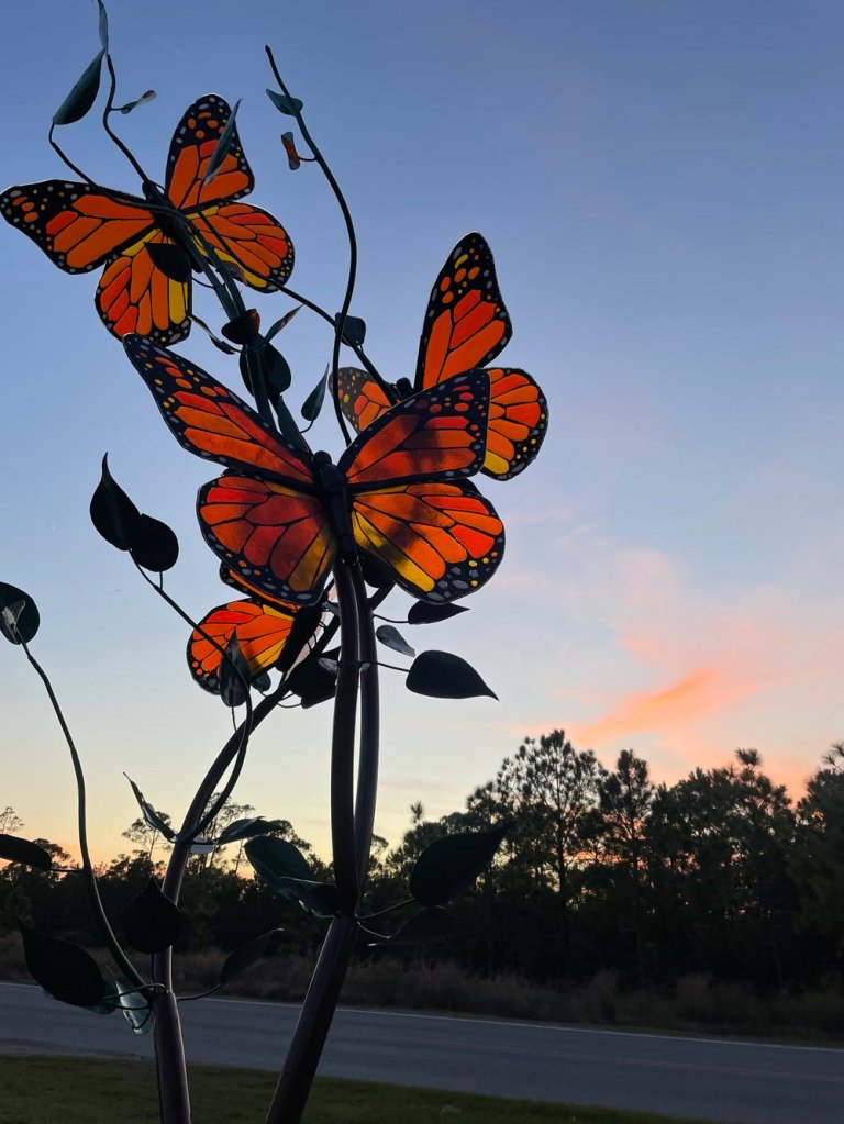 Here’s the cool part: through an amazing set of fortunate circumstances, Peter just won a commission to build a huge 15 foot tall, 18-butterfly tree for the Rosalyn Carter ButterFly Trail in Plains, Georgia. Due to the short timeline, I plan to use the same type of FLiCr controller and spotlights, but with some of the 18 lights wired in parallel to stay within the limit of 8 PWM outputs.