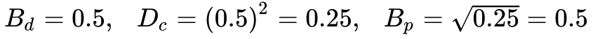 Here’s a really simple example, where gamma=2 and the desired brightness is 50%. If the LED gamma=2, the duty cycle is generated by simply squaring the desired brightness, and the perceived-brightness function is a square root, so: