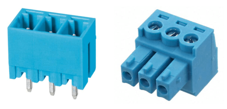 In all of my controller development projects so far, I’ve found that connector choices have a huge impact on PC board size and layout. In my article Weatherproofing Techniques for LED Lighting Systems, I described my preference for 3.81mm pitch pluggable terminal block connectors (header, plug). When used with wire ferrules, these work great when the external cables use stranded wire in gauges between 20 and 14 AWG, and when the maximum current per conductor is greater than 2 amps. For example, a full-length WS2815 LED strip (5m, 300 LEDs, 12v) requires a maximum current of about 4A. This current is carried by two of the three conductors in the 3-conductor cable, so a 3-pin pluggable terminal block (rated for 7A) is a perfect solution.