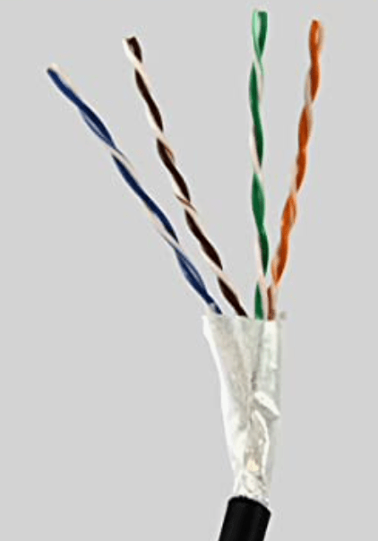 For the four Flex-to-Fido cables, I selected outdoor-rated Cat5e ethernet cable. This type of 8-conductor cable is widely available and very inexpensive ($0.30/foot). It consists of four pairs of 24 AWG solid wire. The twisted-pair characteristic isn’t important in this application, so I’ll just be using six of the conductors. An added bonus with this type of cable is that both the jacket and individual wire insulation are very easy to strip, and the 24 AWG solid wire works well with the push-in terminal blocks.