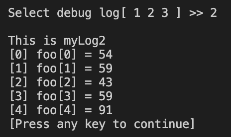 CLOG(loopLog.add(), "foo[%d] = %d", foo);